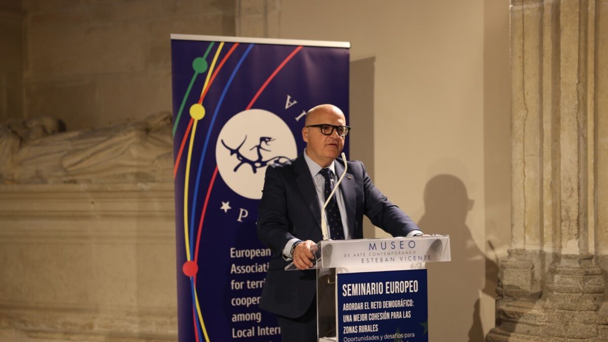 Baixo o título "Afrontando o reto demográfico: mellor cohesión do rural", o presidente da Deputación de Segovia, Miguel Ángel de Vicente, saudou aos participantes nunha xornada que, ademais do formato telemático, tivo como carácter presencial. -Mostrar a cara a Capela do Museo de Arte Contemporáneo “Esteban Vicente”, onde se realizaron tres debates sobre a perspectiva europea do reto demográfico, os casos de éxito e as boas prácticas.