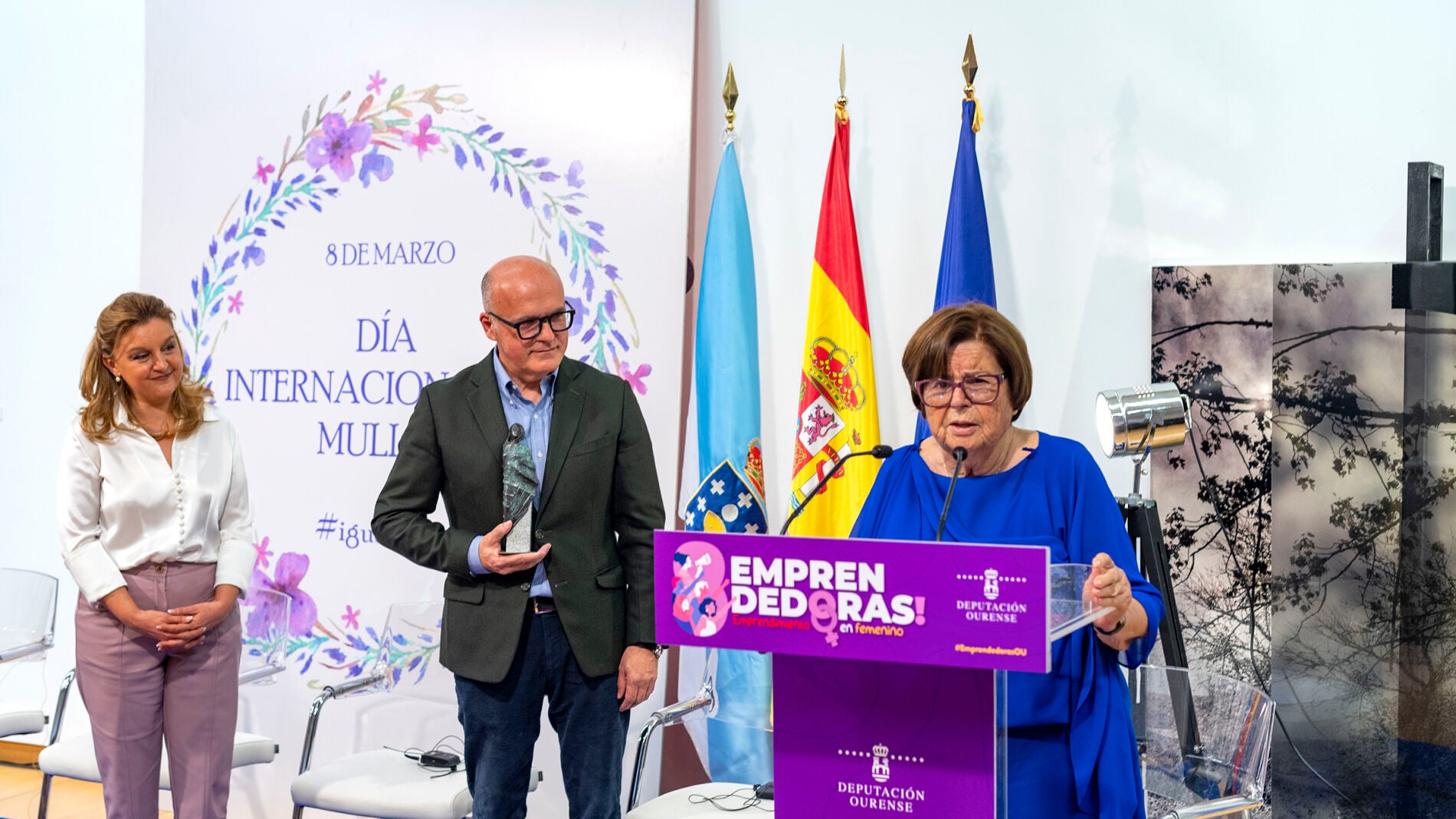 A homenaxeada nesta primeira edición de “Emprendedoras, en feminino” participou nunha mesa redonda na que tamén interviñeron a presidenta da Confederación de Empresarios de Ourense (CEO), Marisol Nóvoa, e catro emprendedoras no rural: Inés Rodríguez, fundadora de Rir&Co, en Allariz; Araceli Macías, fundadora da Cooperativa Outonía, en A Veiga; Ana Álvarez, de Fabricación Cosmética Natural, en Sarreaus; e Leticia Rodríguez, arquitecta de RDL Estudio, en Ribadavia. Estas catro mulleres, que falaron da súa experiencia, participan no programa EmprendOU da Deputación de Ourense, que ofrece axudas para proxectos empresariais e de autoemprego en municipios rurais en declive demográfico. Unha iniciativa na que o 50 % dos proxectos correspóndense con mulleres emprendedoras e mozas.