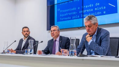 Luis Menor estivo acompañado na súa comparecencia polo director da Área de Medio Ambiente da Deputación, Javier Bobe, e polo responsable de operación de AquaOurense, Víctor Comesaña.