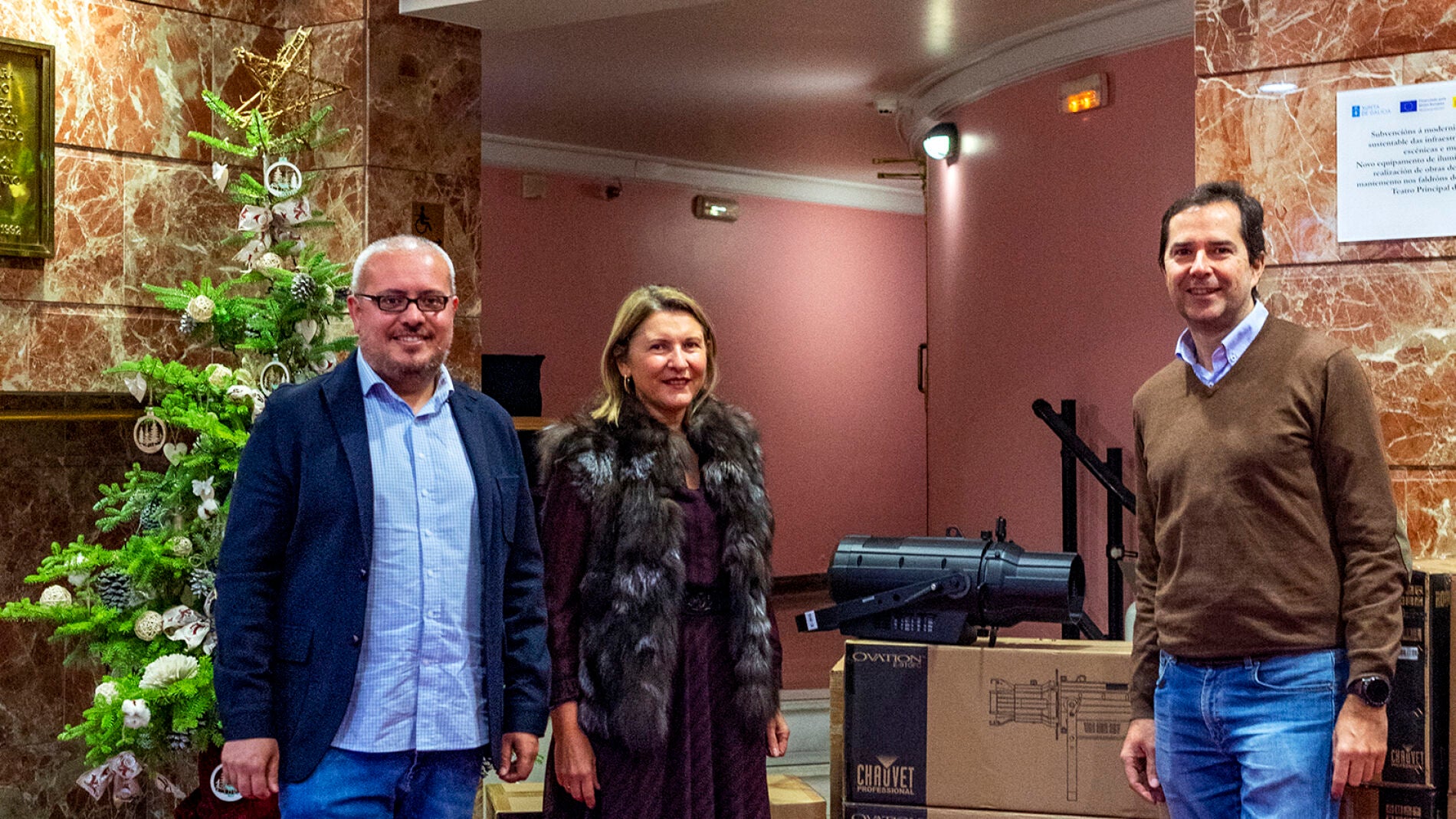 O Teatro Principal de Ourense está a estrear un novo equipamento profesional de iluminación escénica, para o que contou co apoio económico da Xunta de Galicia a través da liña de axudas para a modernización e xestión sustentable das infraestruturas de artes escénicas e de música. Na súa recente visita ao espazo da rúa da Paz, o director da Axencia Galega das Industrias Culturais, Jacobo Sutil, tivo a oportunidade de coñecer da man do vicepresidente da Deputación Provincial de Ourense, César Fernández Gil, e da directora do Principal, Olga Mojón, que melloras introducirá este novo sistema dixital nas representacións dos espectáculos, ademais de comprobar os traballos de conservación e mantemento acometidos nos faldróns da cuberta do edificio.