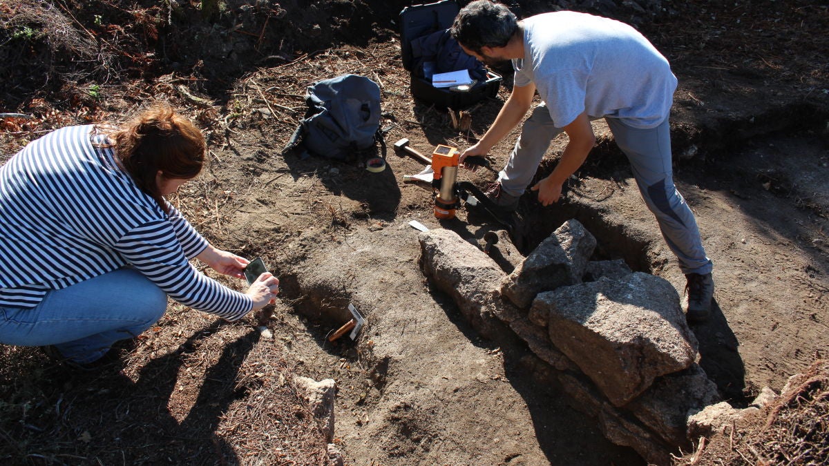 “Os nosos traballos centráronse en dúas partes claramente diferenciadas. A primeira delas correspondente á parte máis elevada do monte, onde localizamos parte dunha muralla ciclópea e cabanas circulares tipicamente castrexas. E por outra banda, aos pés mesmo deste castro, onde emerxe outro recinto monumental delimitado por un pequeno valado”, apunta o arqueólogo director da intervención Martiño Xosé Vázquez.
