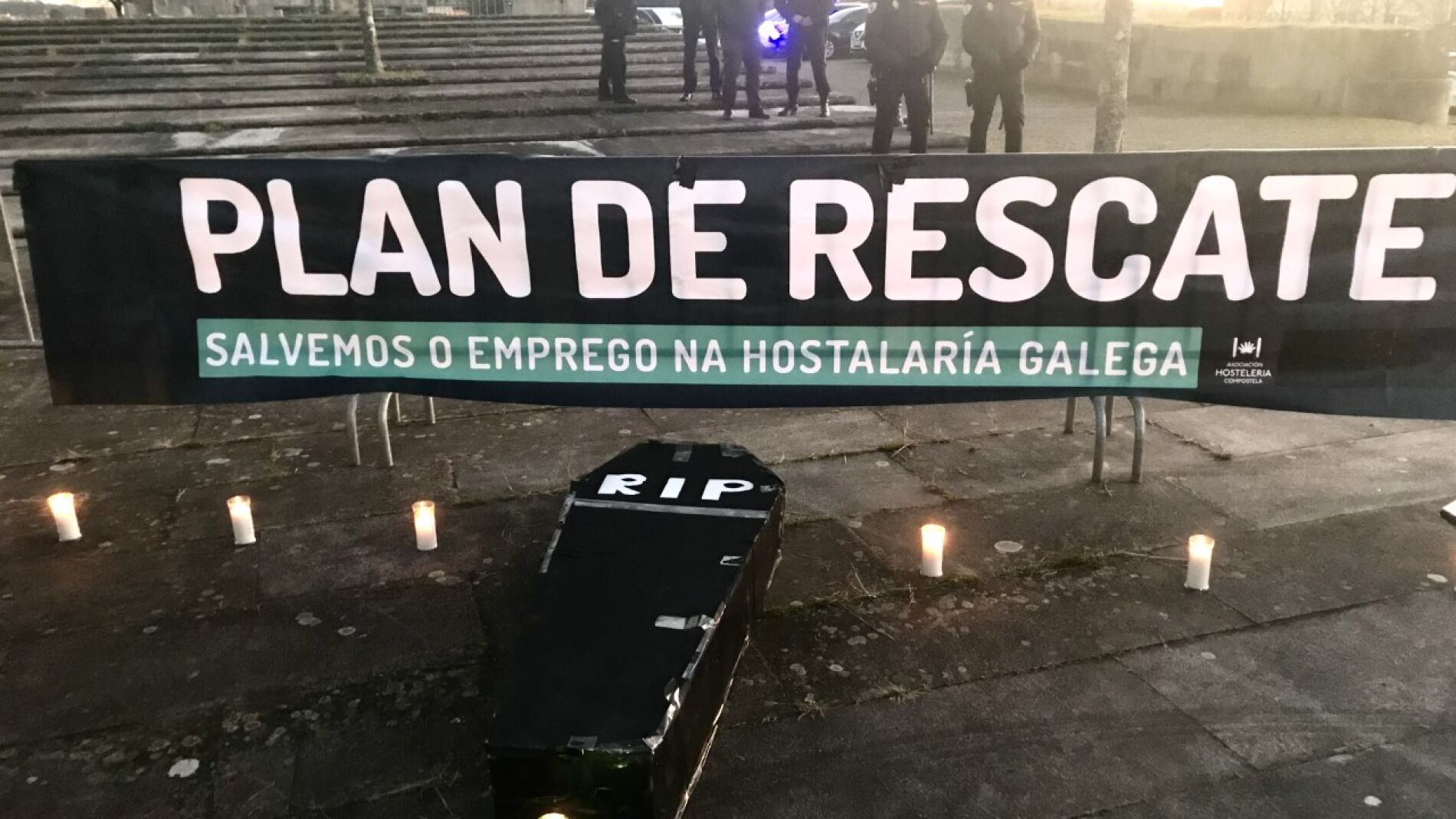 La movilización de la Hostelería fue convocada por Hoempo, sumándose así a la iniciativa de la Plataforma Na Defensa da Hosteleria Galega que se desarrolló simultáneamente en veinte municipios de la comunidad, partió del edificio de la Xunta en Pontevedra. Formando una caravana fúnebre denunciaron la agonía de muchos negocios que no resisten más la actual situación. Aseguran que las medidas decretadas por los gobiernos autonómico y central han criminalizado a un sector intervenido porque "no puede continuar con su actividad".