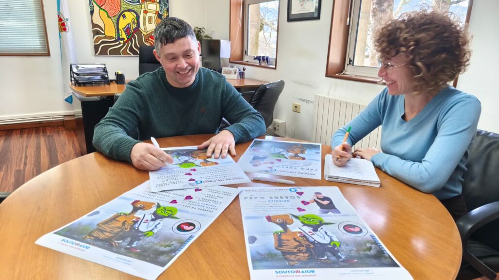 O alcalde de Soutomaior, Manu Lourenzo, e a técnica de Cultura do Concello, Sonia Pintos, presentaron a programación para as artes escénicas que nos achega, dende normalización Lingüística, a campaña Goza do teu Punto G, o galego dáche un punto.