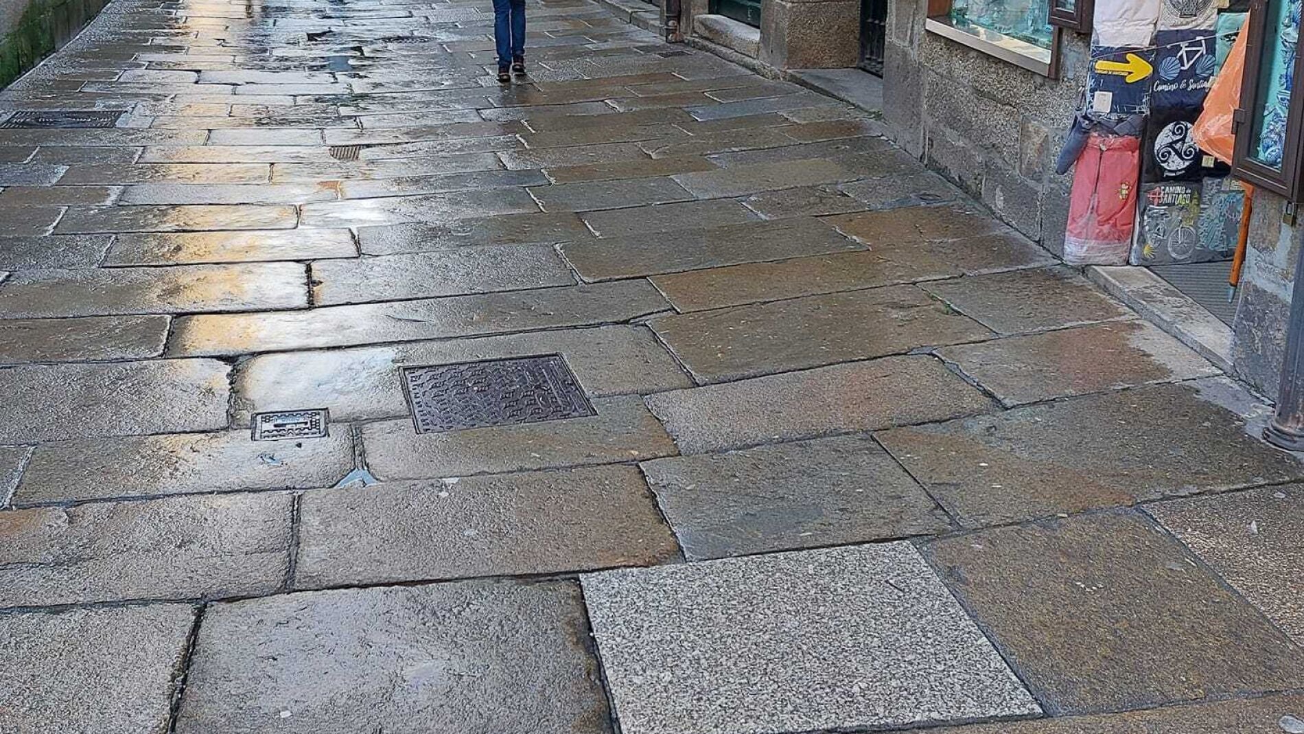 Cada vez que llueve intensamente se producen bolsas de agua e inundaciones en la rua do Franco, varias veces al año según los comerciantes