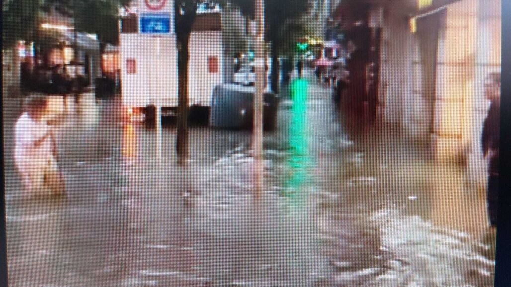Varios locales comerciales de la rúa Frei Rosendo Salvado registraron inundaciones tras las intensas lluvias en un corto espacio de tiempo