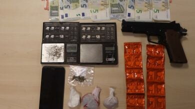 Durante la operación, los agentes intervinieron 300 dosis de heroína, 100 dosis de cocaína, do básculas de pesaje, 1.400 euros en metálico, utillaje utilizado para la manipulación y el envasado, y una pistola de balines.