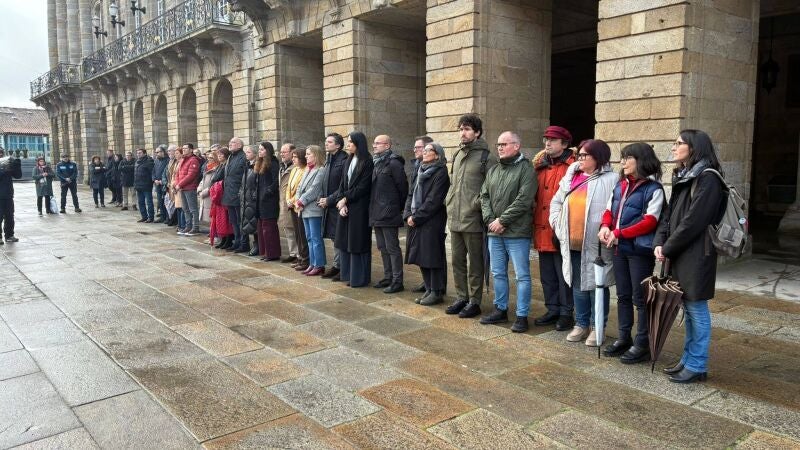 En la capital gallega, la corporación municipal se ha concentrado este mediodía en la Praza do Obradoiro, a las puertas del Pazo de Raxoi, donde la alcaldesa, Goretti Sanmartín, ha enviado un "abrazo solidario muy fuerte y todo el ánimo" a todas las personas afectadas por el accidente.