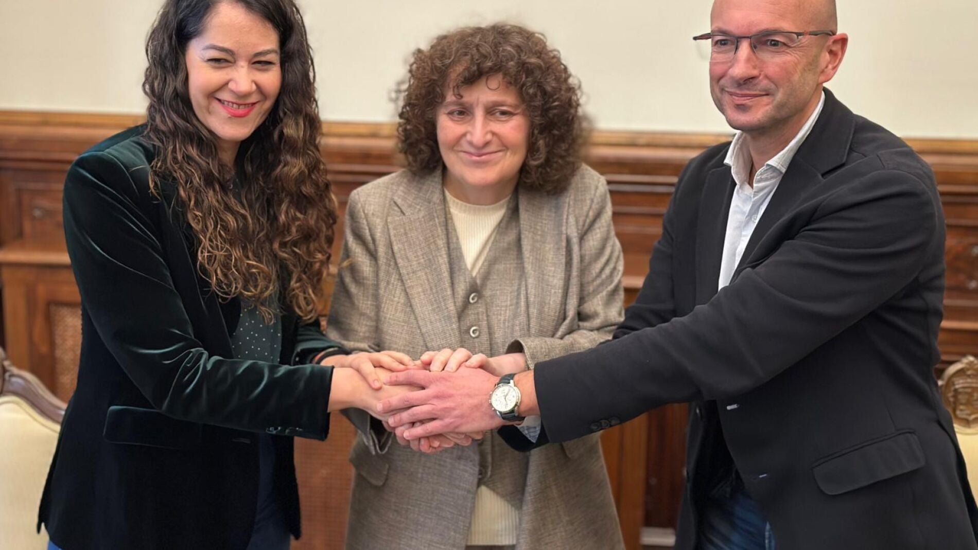 Los grupos que integran el gobierno de Santiago de Compostela, Bloque Nacionalista Gallego y Compostela Aberta, y el Grupo Municipal Socialista firmaron este martes un acuerdo para la aprobación de los presupuestos de 2025, unas cuentas que, tras la correspondiente tramitación, deberán ser presentadas al Pleno para su aprobación inicial. La firma estuvo encabezada por el alcalde, Goretti Sanmartín, junto a la primera teniente de alcalde, María Rozas, y el portavoz del Grupo Municipal Socialista, Gonzalo Muíños, y tuvo lugar en el salón verde del Pazo de Raxoi.