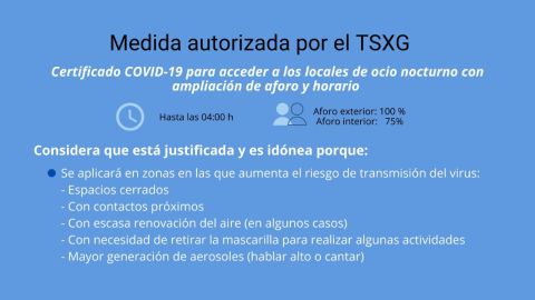 El TSXG autoriza solicitar certificado COVID-19 para el ocio nocturno