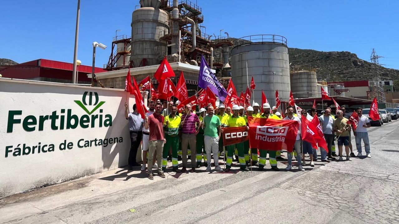 Un ERE que afecta a 3 trabajadores de la planta de Cartagena, según nos cuenta Tomás López, presidente del Comité de Empresa de Fertiberia-Química del Estroncio Cartagena. Para el mes de junio, tienen previsto hacer paros los días 5, 6, 11, 12 y 13.