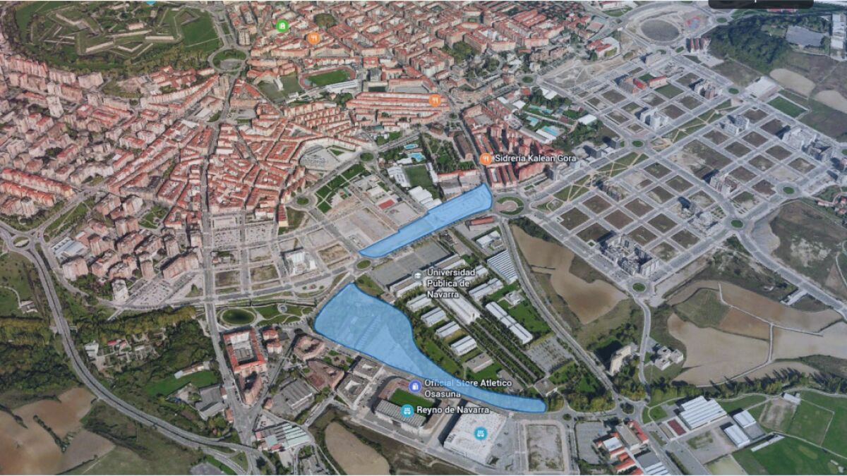 Por otra parte, la zona del espacio fluvial contiguo al río Sadar tendrá uso global de zona verde - parque y se integrará en el parque fluvial del Sadar. Se completa de esta forma el corredor fluvial del Sadar, ampliando la zona de esparcimiento del campus universitario al sur del río, eliminando los espacios degradados e incorporando criterios de adaptación al cambio climático.