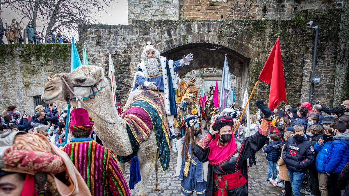 Sus Majestades de Oriente llegarán a Pamplona por el Puente de la Magdalena a las 16.00 horas a lomos de sus dromedarios reales y recorren el tramo del Camino de Santiago a su paso por Pamplona.