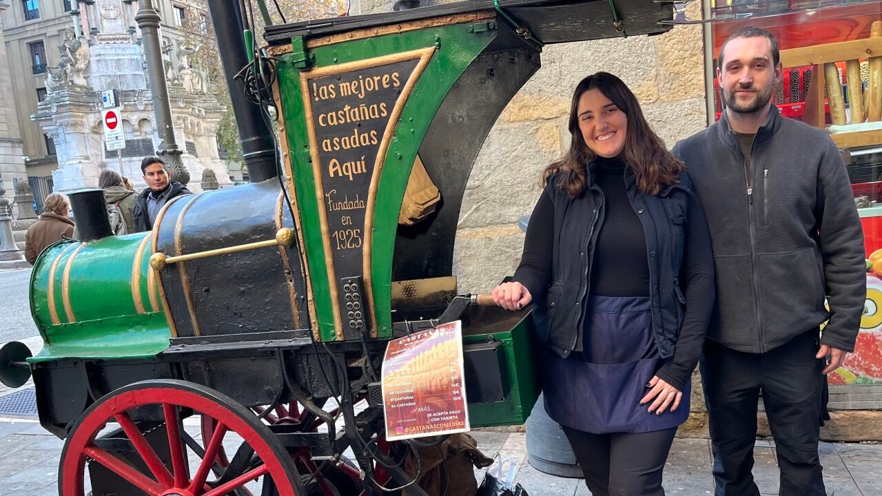 A mediados del pasado mes de octubre Leyre, nieta, hija y sobrina de una saga de castañeros centenarios, como es la familia Martínez, tomaba las riendas de la famosa locomotora de la calle Comedias que durante tantos años se había convertido en una estampa habitual del otoño-invierno pamplonés. Por aquel entonces lo hacía con los nervios propios de haber asumido una responsabilidad tan importante en su familia y después de habérselo prometido a su abuelo Miguel fallecido durante este año. “Mi despedida hacia él fue especial. Sin que nadie lo supiese y sin haberlo hablado con absolutamente nadie, le prometí en nuestra despedida que la locomotora volvería a salir a las calles y que la gente podría seguir disfrutando de esta tradición tan bonita que han ido formando a lo largo de los años tanto mi bisabuelo como mi abuelo y mi tío en este puesto y mi padre en el suyo de la Plaza de Merindades”, recuerda emocionada en los micrófonos de Onda Cero.