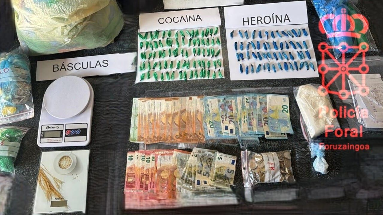 Las incautaciones, los restos de papelinas de aluminio, recortes de bolsas de plástico y diferentes pipas caseras de plástico "formaban parte del paisaje de los alrededores de la vivienda". Todo ello motivó la solicitud de entrada y registro al Juzgado de Instrucción nº2 de Tafalla, Tras obtener la autorización, el Grupo de Intervenciones especiales (GIE) accedió al inmueble para su registro. En dicho registro, los investigadores se incautaron de 113 dosis de heroína y cocaína, sustancias para su corte, 1.620 euros en efectivo, básculas y material diverso para la manipulación de la droga. Por todo ello se procedió a la detención de la mujer y del varón (que además realizaba labores de vigilancia), quienes fueron puestos a disposición judicial junto con el correspondiente atestado policial, siendo posteriormente decretada su puesta en libertad.