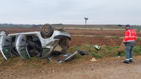 El siniestro se ha producido cuando el coche, que circulaba por una pista de concentración parcelaria denominada Camino de La Carrera, situada en el término de Las Suertes, ha sufrido una salida de vía y ha volcado, dando una vuelta sobre su eje.