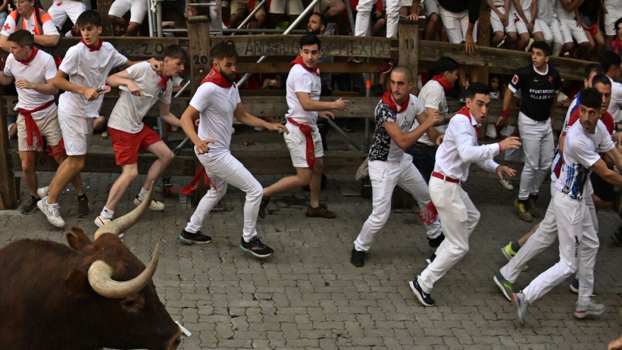 Los míticos toros de la ganadería sevillana de Miura han cerrado los encierros de los Sanfermines 2022 con una carrera fugaz y emocionante, aunque limpia y con menor número de corredores.