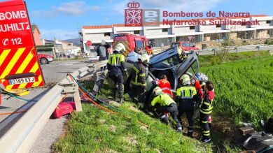 El centro de gestión de emergencias de SOS Navarra 112 ha recibido aviso del siniestro a las 18.03 horas del domingo y ha movilizado al lugar de los hechos a efectivos de bomberos del parque de Cordovilla, una ambulancia de soporte vital avanzado (medicalizada) y patrullas de Seguridad vial de la Policía Foral.