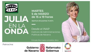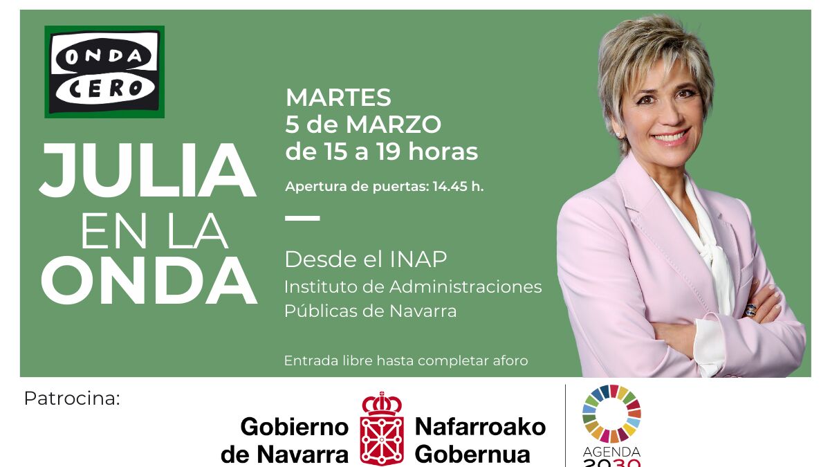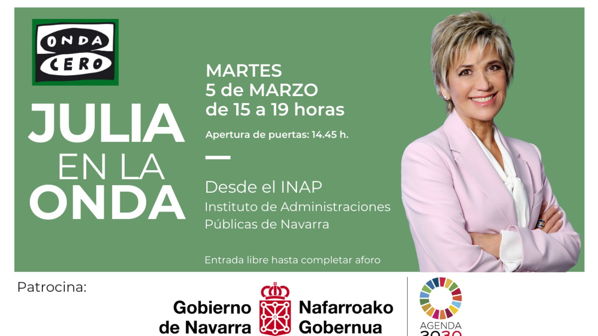 Julia Otero viaja el martes 5 de marzo a Pamplona para emitir una edición especial del programa “Julia en la onda” en directo y cara al público, con el patrocinio del Gobierno de Navarra.