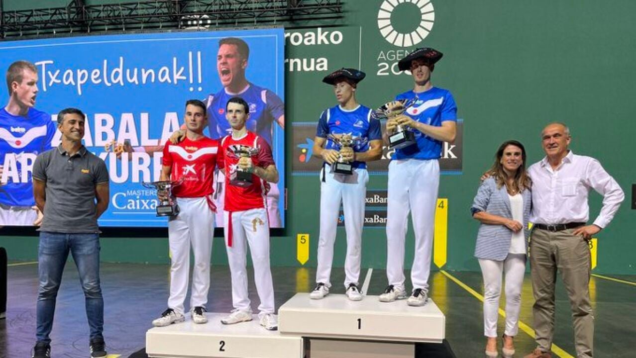 Había dos navarros entre los semifinalistas del Masters Caixabank de pelota a mano que disputó su fase final en el frontón del Navarra Arena, y uno de ellos ganó la final: Jon Mariezkurrena, el zaguero de Berriozar que en compañía del riojano Zabala ganó a Altuna e Imaz 22-15 en una final inclinada hacia los azules desde los primeros tantos.