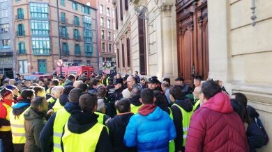 Los agricultores se han concentrado desde primera hora del jueves frente al Parlamento foral. Iniciado el debate, han cruzado desde el Paseo de Sarasate hacia la sede del Legislativo, cortando el tráfico y tratando de acceder al Parlamento, pero la Policía Foral lo ha impedido. Se han vivido momentos de tensión en los que los agentes han tenido que hacer uso de las porras. Posteriormente, la situación se ha tranquilizado, aunque el tráfico permanece cortado.
