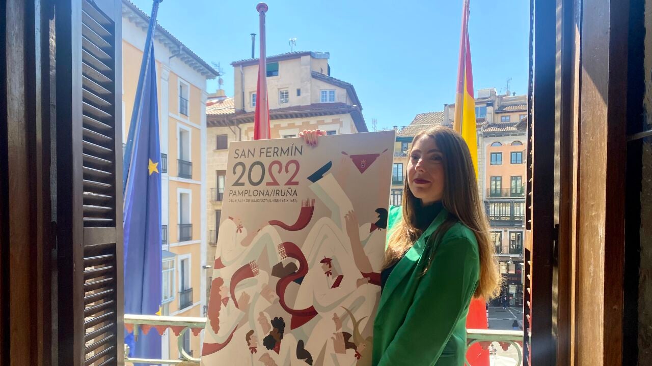 Emocionada, pero entera, así se ha mostrado la ganadora del cartel de San Fermín 2022, Olaia Merino Erviti, cuando se ha anunciado que su obra representaría las fiestas de la ciudad.