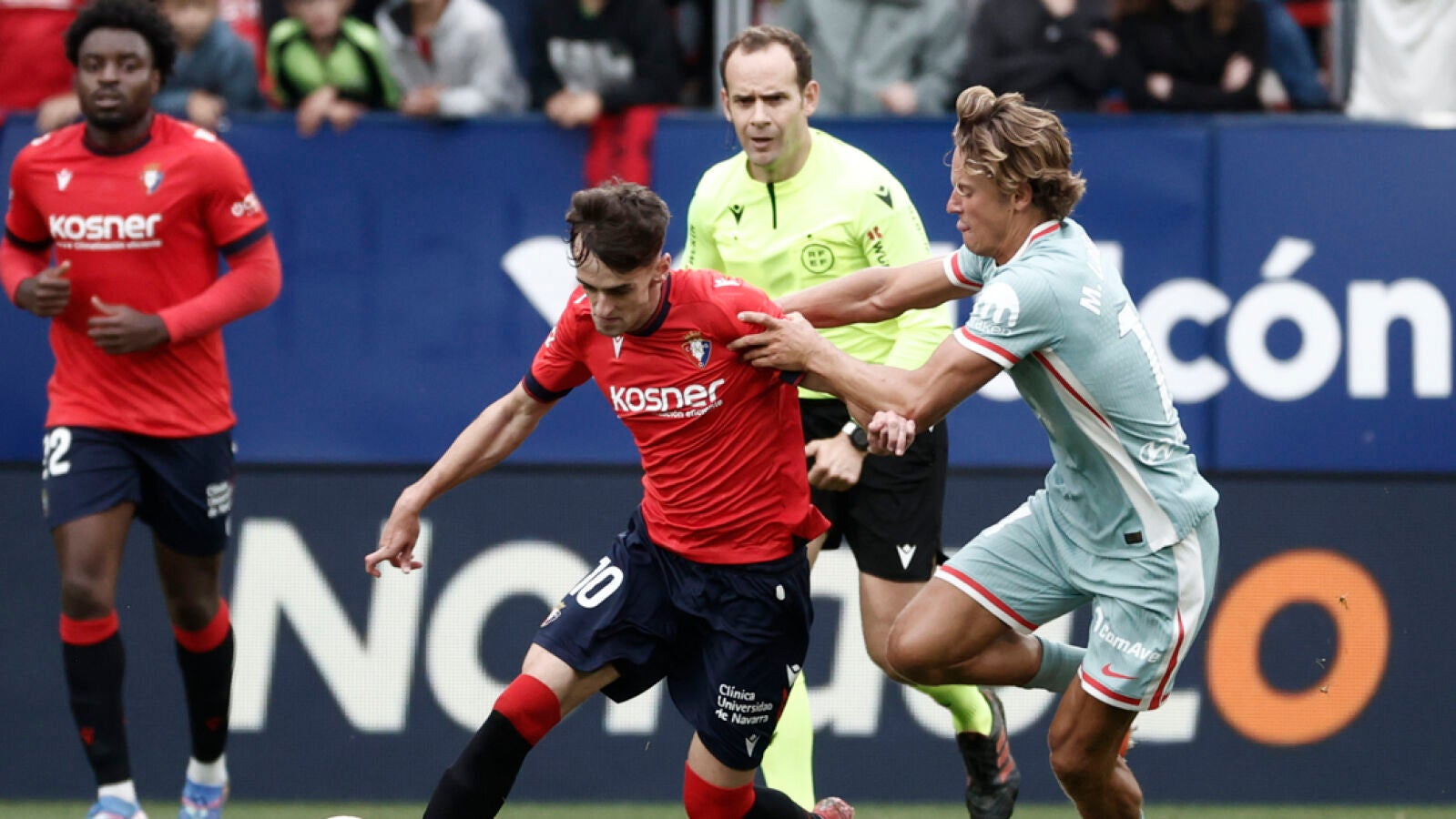 El Atlético comenzó imponiendo su calidad, pero los rojillos no se quedaron atrás y plantaron cara a los colchoneros con garra. Catena se elevó en el cielo de Pamplona para ganar a Giménez por alto en el minuto 25.
