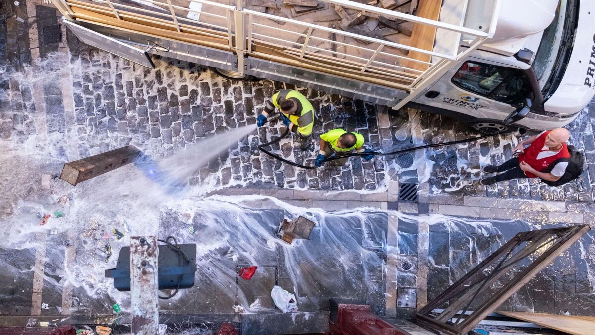 Los datos varían de unos días a otros. En concreto, durante el fin de semana se redujo, de media, un 30% la generación de vidrio (con 93.720 kilos frente a los 132.300 de los días 6 y 7 de 2023), pero aumentó un 20% la recogida de basura y un 12% la limpieza). Entre semana, por el contrario, ha aumentado la generación de vidrio (206.740 kilos estos días frente a los 170.120 de un año antes) y se ha reducido la recogida de basura.
