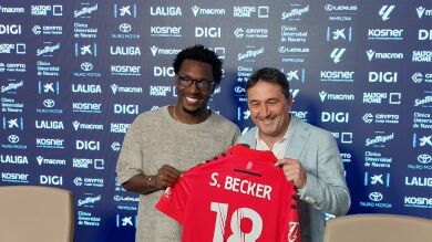 Por fin Sheraldo Becker ha entrenado con sus compañeros. Su fichaje por Osasuna se completó en los últimos minutos del mercado de verano y después se fue con la selección de Surinam a disputar partidos oficiales. Hasta ayer no llegó a Pamplona, ciudad de la que ya tiene referencias gracias a Mikel Merino: "Me ha dicho dónde vivir y cómo es la gente. Me ha dado información muy positiva. Le llamé después de haber tomado la decisión de venir aquí, y fue importante que Braulio me demostrara que conoce mi manera de jugar y me hablara de que encajaba en el equipo".