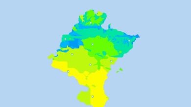 Posibilidad de brumas y nieblas dispersas en zonas altas del tercio norte al principio y final del día. Cota de nieve en ascenso de 900 a 1200 - 1300 metros en el Pirineo.