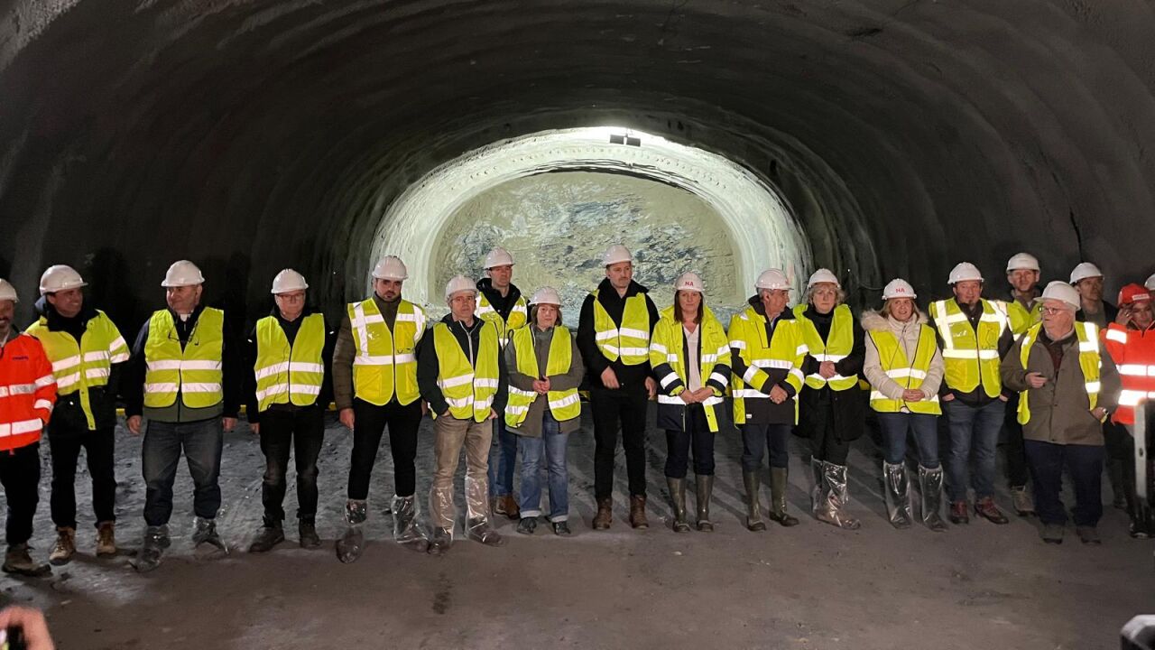 El nuevo túnel de Belate se encuentra excavado al 88% y quedan unos 300 metros para calar la boca norte y la boca sur, en una infraestructura que tendrá un total de 2.856 metros. Hasta el momento se han excavado 1.857,3 metros en la boca norte y 662,2 en la boca sur, es decir, un total de 2.519,5 metros. Actualmente, no obstante, los trabajos se encuentran en una de las partes más complicadas, en un punto en el que se alternan en el túnel materiales duros y blando, según han explicado los técnicos responsables de las obras. La unión de las dos bocas podría alcanzarse en el mes de junio. La excavación realizada hasta ahora corresponde a lo que se denomina el "avance" -la parte que se corresponderá con el superior del túnel-, pero todavía quedarían los llamados trabajos de "destroza" -que se corresponden con la parte inferior y que se llevarán a cabo cuando se haga el cale-. Alcaldes de la zona y medios de comunicación han podido visitar este viernes los avances de las obras, accediendo al túnel desde la boca norte. En la visita han participado el consejero de Cohesión Territorial del Gobierno de Navarra, Óscar Chivite, la delegada del Gobierno en Navarra, Alicia Echeverría, y la directora general de Obras Públicas e Infraestructuras, María Torres.