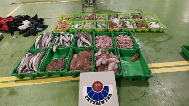 Agentes de la Comisaría de Ondarroa consiguieron localizar el vehículo en el que viajaban dos hombres. Una vez identificados, se pudo comprobar que en el maletero portaban unos 137 kilogramos de diferentes especies de pescado dentro de bolsas de plástico en condiciones insalubres.