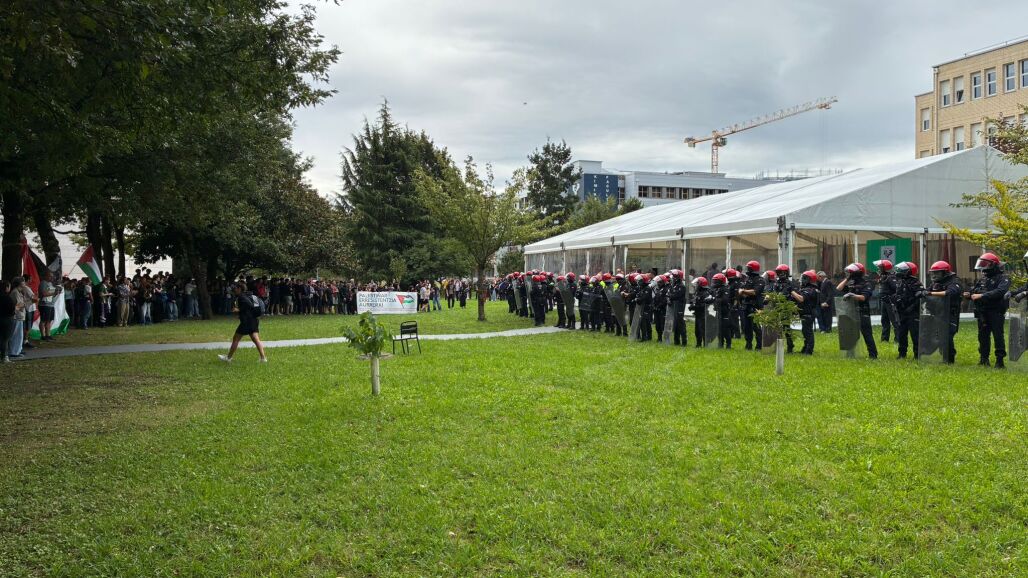 El rector Bengoetxea ha salido de la carpa en la que se celebra la ceremonia para tratar de calmar los ánimos, pero las protestas y gritos han continuado. Personal de seguridad y, posteriormente, la Ertzaintza han desalojado a las personas que pretendían acceder al acto.