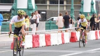 Los ciclistas Ziortza Villa y Julián Sanz han recorrido los 1.000 kilómetros que separan los Campos Elíseos de París de Euskadi en 48 horas, prácticamente sin detenerse. No ha sido un camino fácil, pero ambos ciclistas han entrado con mucha ilusión en el País Vasco. Lo han hecho con el trofeo que simboliza el relevo y que ha sido trasladado de una manera inédita hasta la fecha. Así empiezan los preparativos para que Euskadi sea sede del Tour de Francia en 2023.