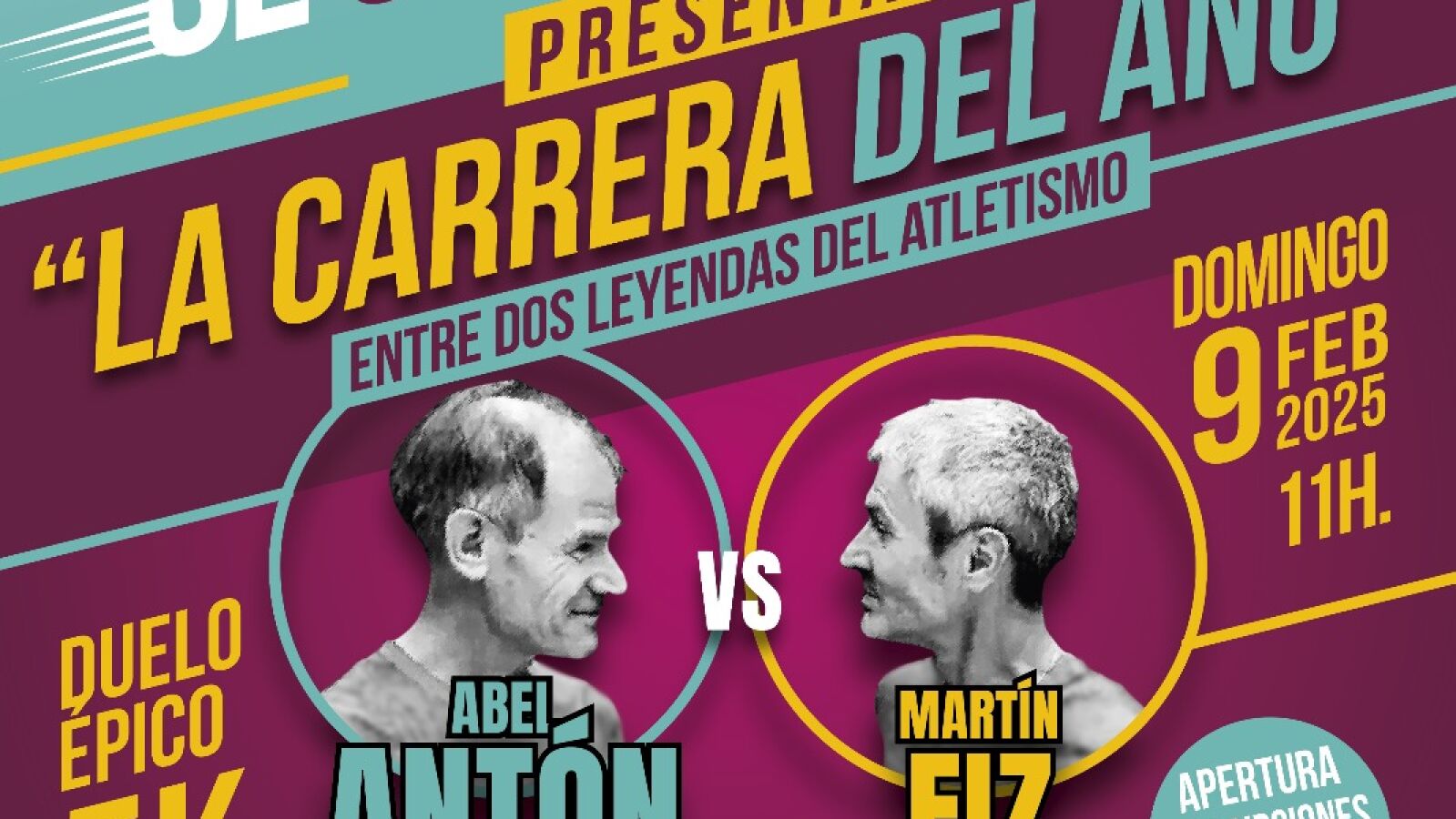 Abel Antón y Martín Fiz protagonizarán su particular reto para comprobar quién de los dos completa el recorrido (5K) en el menor tiempo. Además, todos los participantes entrarán, de manera aleatoria, a formar parte de uno de los dos equipos (Fiz o Antón).