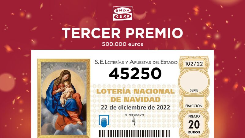 El número del Tercer Premio de la Lotería de Navidad 2022 es el siguiente: 45250.