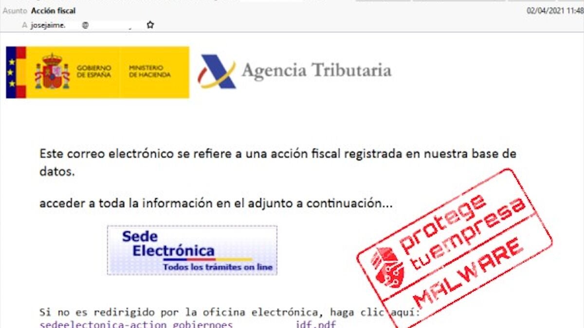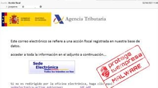 El Instituto Nacional de Ciberseguridad (Incibe) ha advertido de la existencia de un 'malware' que roba datos personales de los usuarios a través de correos fraudulentos haciéndose pasar por la Agencia Tributaria, con el asunto 'Acción fiscal'.
