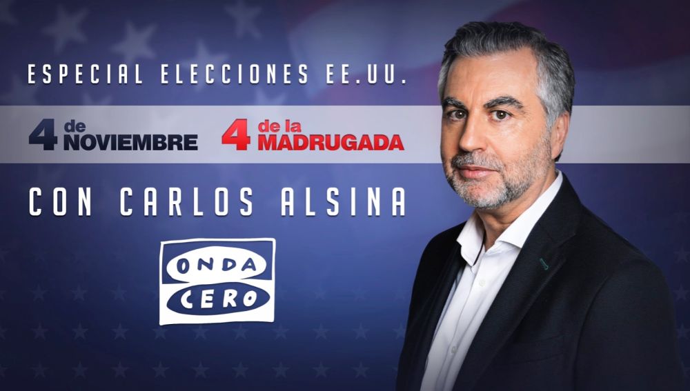 Carlos Alsina conducirá un programa especial sobre las elecciones en Estados Unidos que comenzará la madrugada del martes 3 de noviembre al miércoles 4 de noviembre a las 4:00 horas, un especial que enlazará con 'Más de uno'.