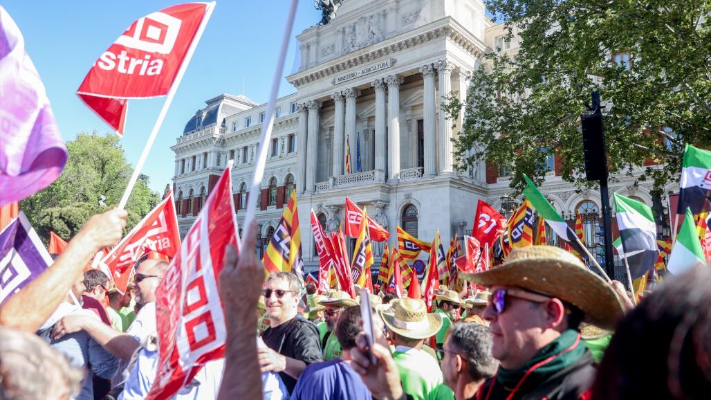 Una protesta a la que han acudido los dos máximos líderes sindicales de CC.OO y UGT, Pepe Álvarez y Unai Sordo, quienes han solicitado al Ministerio de Agricultura que se siente a negociar con ellos a partir de ahora cuando se tengan que poner sobre la mesa cuestiones relativas al campo.