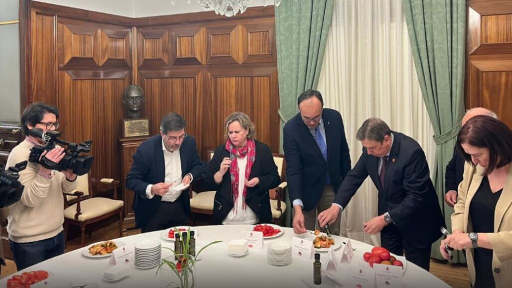 El ministro de Agricultura, Pesca y Alimentación, Luis Planas, ha organizado este viernes una cata de tomates españoles ecológicos aliñados con aceite de oliva extra, después de las declaraciones de la víspera de la exministra gala Ségolène Royal en las que dijo que el tomate bio español es "falso e incomible".