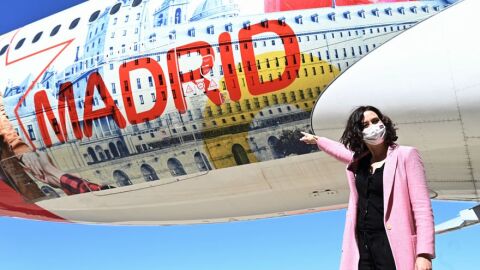 El segundo recurso corresponde a un acto del 12 de abril en la presentación de un avión de Iberia decorado temáticamente con motivos de la Comunidad de Madrid. El problema para la junta es que en ese acto la presidenta aprovechó para asegurar que su proyecto es convertir la región en el nodo aeronáutico del sur de Europa.