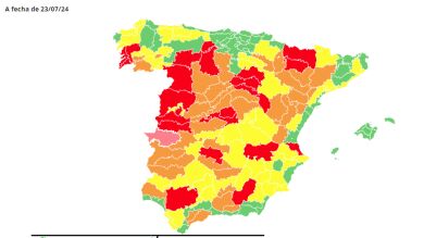 El Ministerio de Sanidad proporciona un mapa marcado por diferentes niveles de riesgo, siendo el 'Nivel 0' el de menor riesgo y el 'Nivel 4' las zonas de mayor impacto del calor, afectando directamente a nuestra salud: