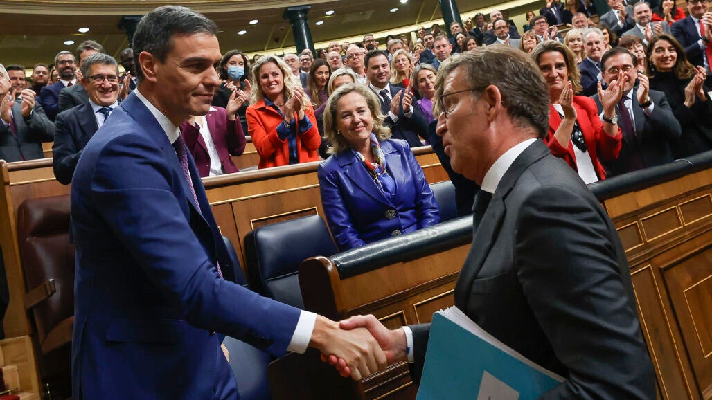 Pedro Sánchez ha sido reelegido presidente tras superar una votación sin sorpresas en la que ha obtenido el respaldo de 179 diputados del Congreso, que representan el 51,14% de la Cámara Baja. Al término de esa votación, Feijóo se ha acercado al escaño del líder del PSOE para felicitarle y ambos se han dado la mano.