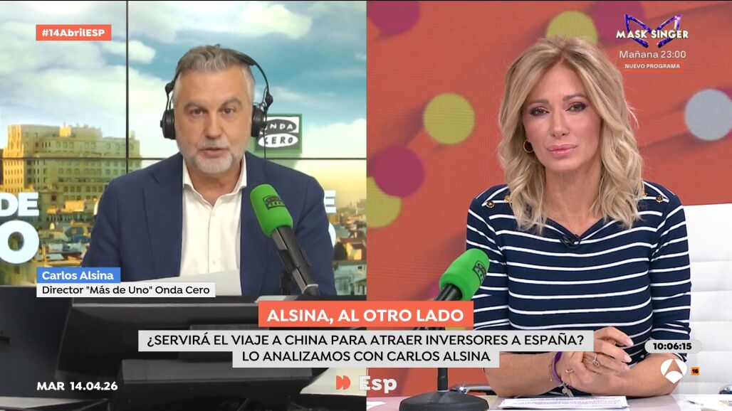 La conexión semanal entre Más de uno y Espejo Público ha arrancado este martes con el foco puesto en la visita de Pedro Sánchez a China y las implicaciones políticas y económicas del viaje. Susanna Griso ha planteado como principal incógnita si este desplazamiento servirá realmente para corregir el desequilibrio comercial entre España y el gigante asiático. Carlos Alsina, por su parte, ha puesto sobre la mesa si el presidente del Gobierno abordará la cuestión de los derechos humanos en China con la misma contundencia que muestra en otros escenarios internacionales, como en sus críticas a Israel.
