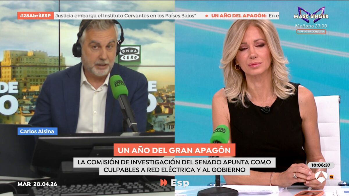 Carlos Alsina ha conversado con Susanna Griso en la conexión habitual entre Más de uno y Espejo Público, donde ambos han analizado la actualidad política con especial atención al aniversario del apagón que dejó a oscuras a buena parte de España.