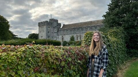 La Casa Real ha difundido unas imágenes en las que se ve a la hija menor de los reyes, de 16 años, paseando cerca de donde se encuentra el centro educativo, ubicado en el castillo medieval de Saint Donat, en el valle galés de Glamorgan.