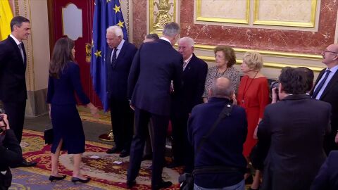 Pedro Sánchez también estaba presente y ha seguido a los reyes en el protocolario saludo a dichas personalidades antes de comenzar el acto en el hemiciclo del Congreso. Así, el acto ha dejado un momento llamativo en el que tanto Sánchez como Felipe González se han visto obligados a saludarse.