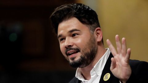 El portavoz de ERC Gabriel Rufián, durante su intervención este jueves en el Congreso de los Diputados, afirmó que el exdiputado de Unidas Podemos, Alberto Rodríguez, fue condenado a raíz de una "denuncia falsa", poniendo así en entredicho el fallo a la pena de prisión de un mes y quince días como autor de un delito de atentado a un agente de la autoridad y que finalmente se sustituyó por una pena de multa de 540 euros en total.