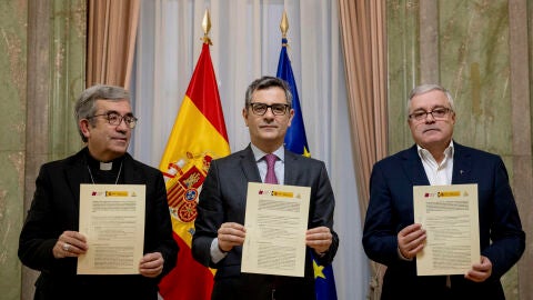 El acuerdo será firmado por el ministro de la Presidencia, Félix Bolaños; el presidente de la Conferencia Episcopal Española, Luis Argüello; el presidente de la Conferencia Española de Religiosos, Jesús Díaz Sariego, y el defensor del Pueblo, Ángel Gabilondo.