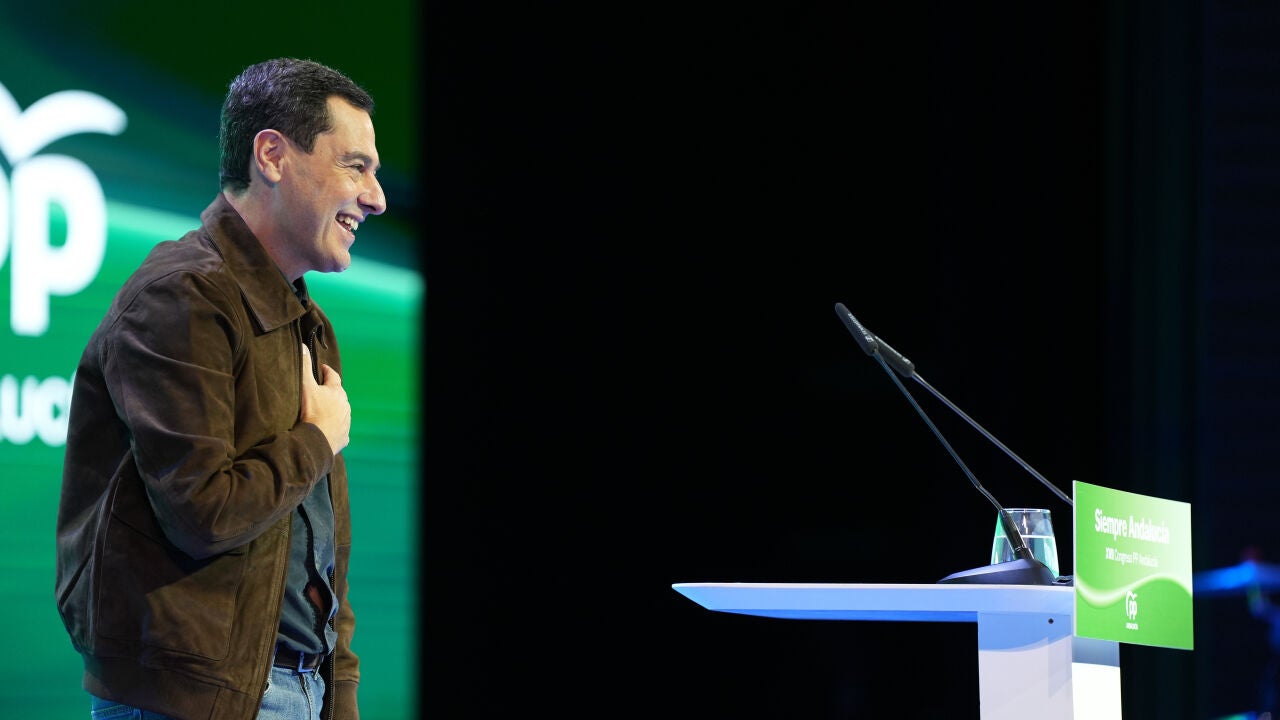 El presidente de la Junta de Andalucía, Juanma Moreno, ha sido reelegido este sábado como líder del PP andaluz, por cuarta vez, con un 99,95% de los votos de los compromisarios que participan en el congreso de la formación.