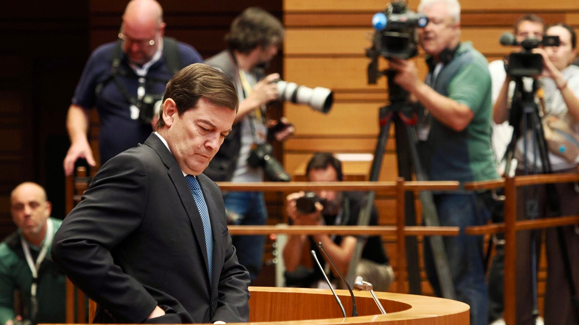 El presidente compareció en un pleno extraordinario solicitado por la oposición, incluidos Vox y PSOE, en el que más de medio millar de bomberos y colectivos sociales se concentraron frente al Parlamento para exigir la dimisión de Mañueco y del consejero de Medio Ambiente, Juan Carlos Suárez-Quiñones. De hecho, la portavoz socialista, Patricia Gómez Urbán, sostuvo que el presidente sale "políticamente sentenciado" y reclamó un proyecto de futuro para Castilla y León, al considerar que la gestión actual es "del pasado".